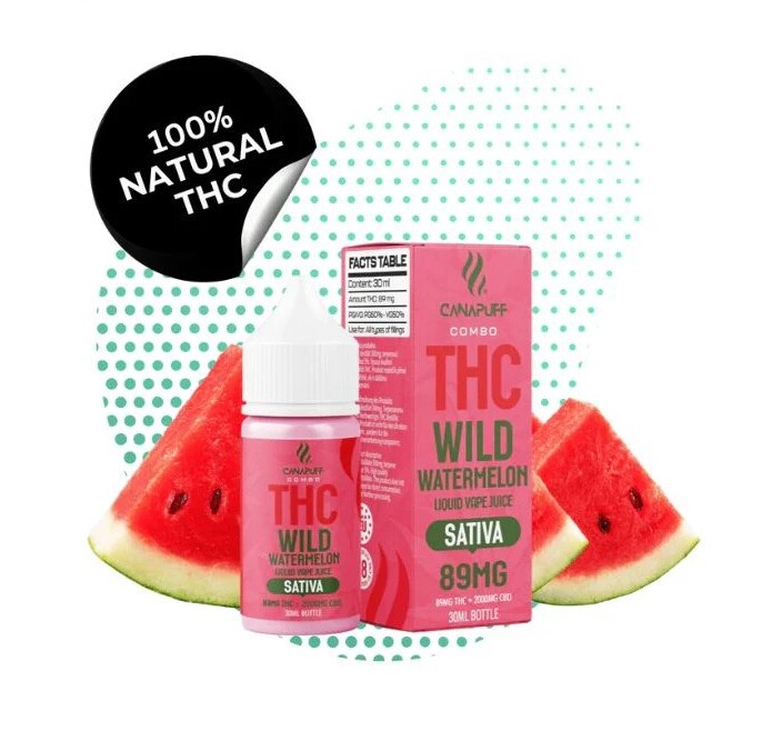 Experience the refreshing, flavorful, and euphoric benefits of CanaPuff THC+ Liquid Wild Watermelon 30ml—your go-to choice for a premium and safe THC vaping experience in Pakistan.
