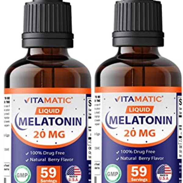 Vitamatic Melatonin 20mg Liquid Drops – 2 Pack (59ml Each) | Natural Berry Flavor | Maximum Potency Sleep Supplement in Pakistan